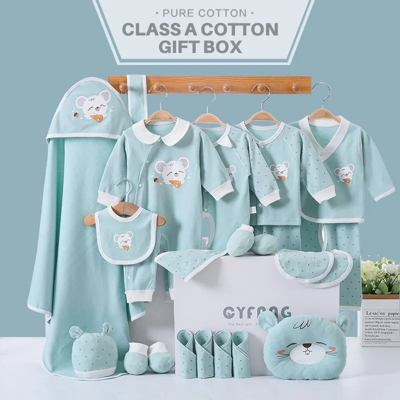 - 26 Pieces Newborn Clothes Baby Gift Pure Cotton Baby Set 0-12 Months Autumn And Winter Kids Clothes Suit Unisex No Box Bib Hat