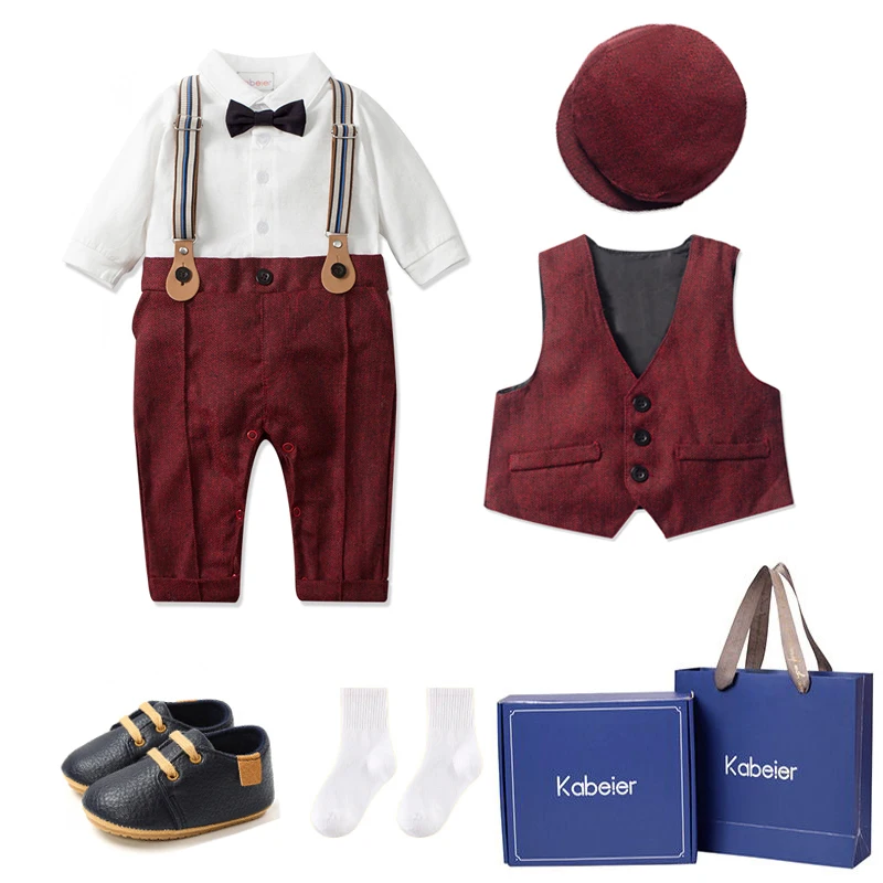 - Birthday Formal Set For Newborn Baby Boys Gentleman Clothes Suit Gift with Paper Bag Packaging Box Infant Wedding Outfit Set