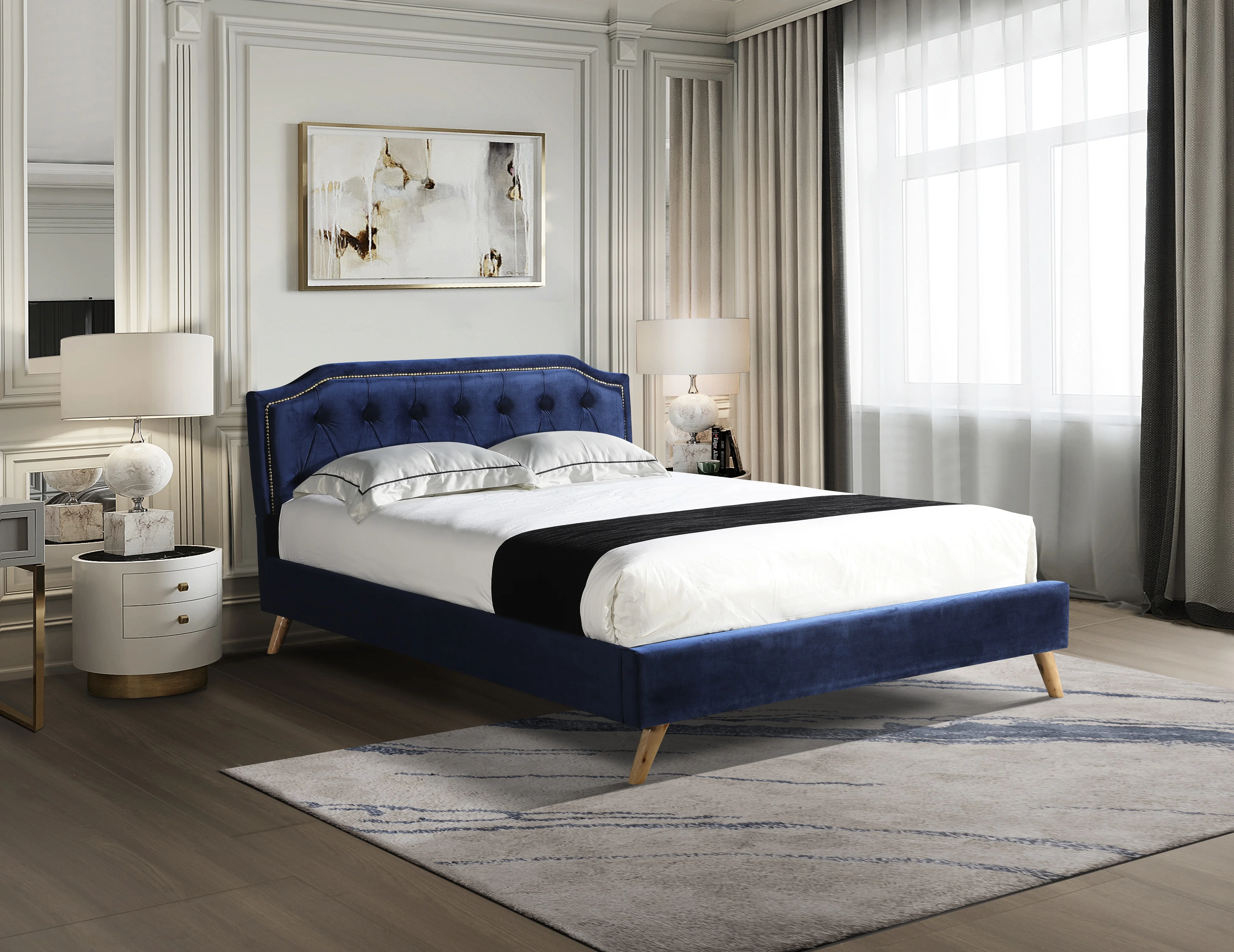 - Home Modern Bedroom Furniture Beds Frames Bases Queen Size Upholstered Platform Bed Navy Fabric Bed Frame Box Spring Not Needed