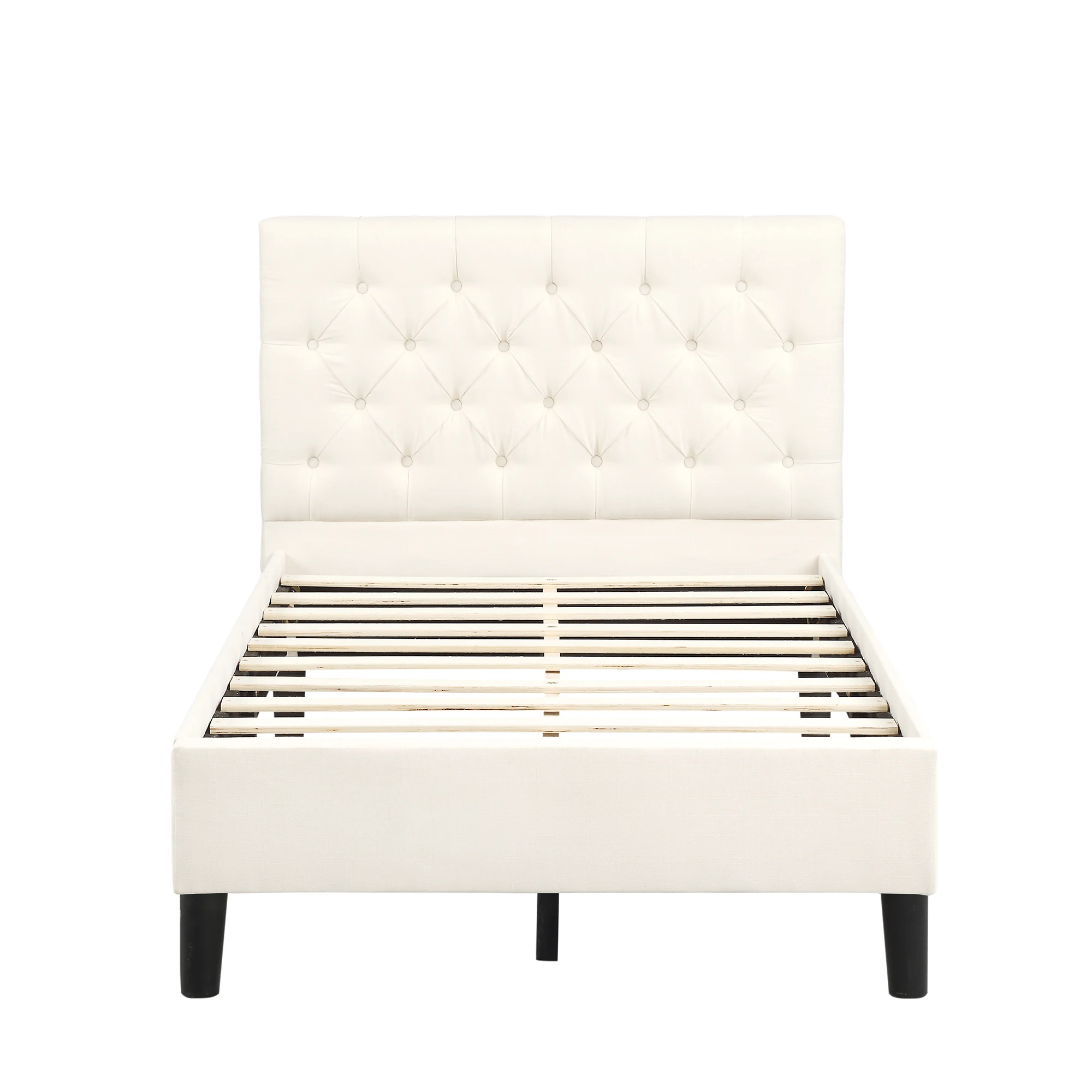 - Twin Size Bed Frames with Headboard, Platform Upholstered Linen Fabric Button Square Stitched Headboard, No Box Spring Needed,