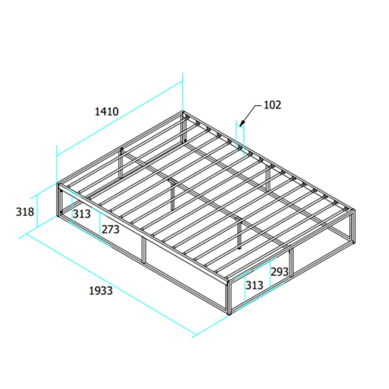 - Full Size Metal Bed Platform Bed Frame Box Spring Strong Metal Structure Easy Assembly GREY[US-W]