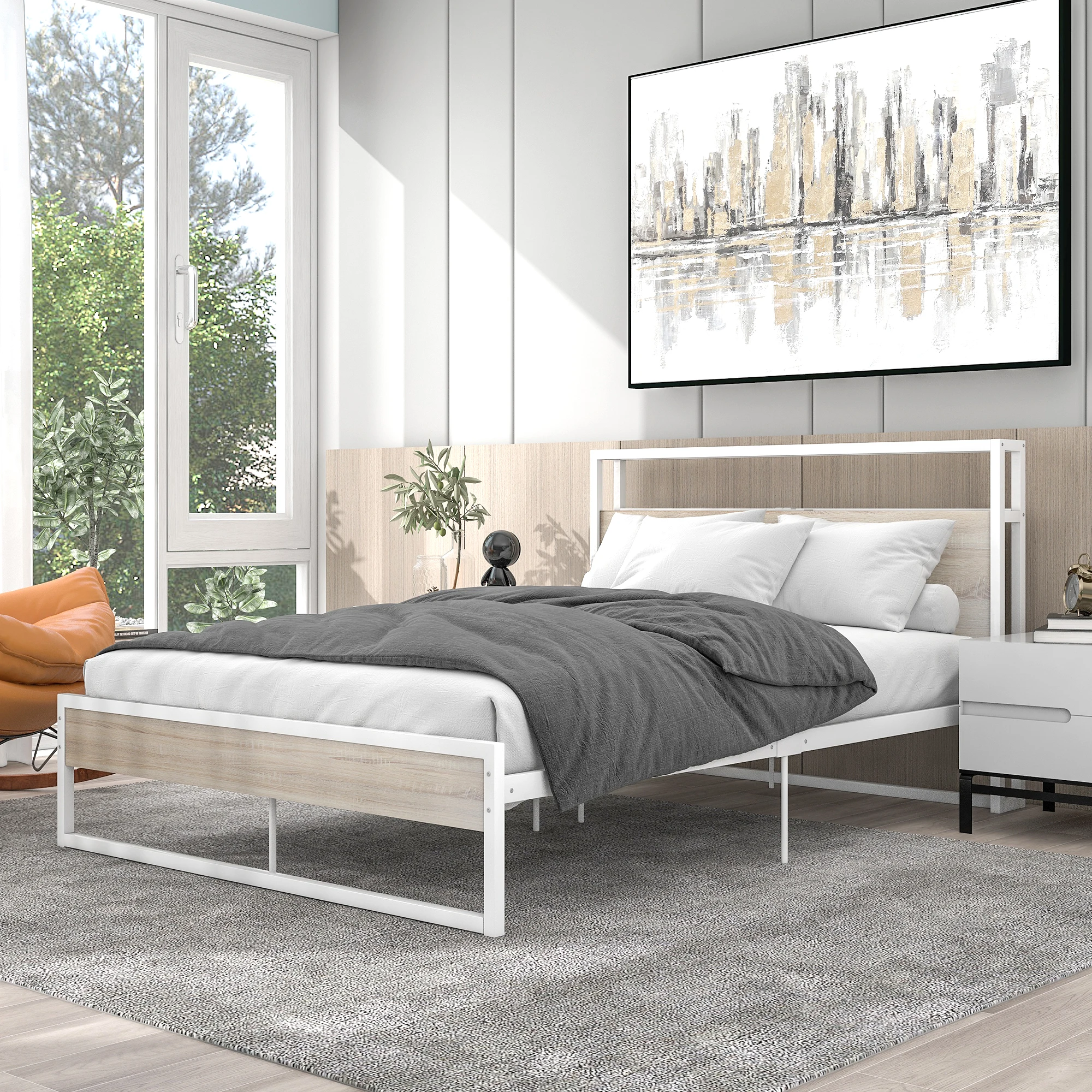 - Queen Metal Bed Frame with Headboard and Footboard Platform Queen Size No Box Spring Needed 12.4" Under Bed Storage